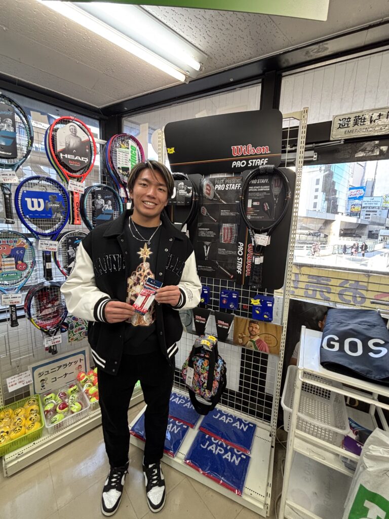 去年ATPチャレンジャーダブルスで初タイトルを手にした三井選手がご来店しました!